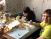 笑顔を見せる「ミスターパッド」ことフセインさん(左)とキルタのメンバーの女の子ナプキンちょうだい!