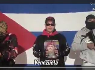 政府系犯罪組織ラ・ピエドリータの幹部ら。中央が創設者のバレンティン・サンタナ氏。一般市民を恐怖に落とすベネズエラのマドゥロ大統領が米国に拘束されたことを受け、マドゥロ政権(チャビスタ)を支持する暴力組織(総称「コレクティーボ」)のなかでも最も凶暴で影響力をもつとされる「ラ・ピエドリータ」の創設者バレンティン・サンタナ氏(写真中央)が声明を出し、ベネズエラ国内の市民を震え上がらせている。